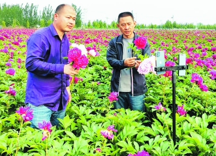 “過去是花農(nóng)‘開著貨車載著牡丹跑全國’,現(xiàn)在是‘坐在家中牡丹隨時賣全國’。”皇鎮(zhèn)街道黨工委書記穆靜介紹,王橋村幾乎家家從事牡丹的種植和銷售,村民通過網(wǎng)絡(luò)平臺直播帶貨已成為“新農(nóng)活”。