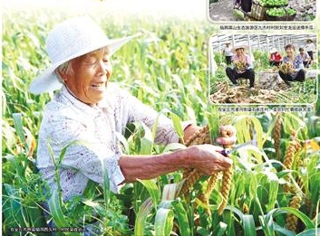青州市譚坊鎮(zhèn)南孫家村,房前屋后到處是金燦燦的玉米,堆積在一起好似一座座黃金塔;位于濱海區(qū)的濰坊景海高端果蔬示范園內(nèi),熟透的蘋(píng)果掛滿枝頭,像一個(gè)個(gè)紅彤彤的燈籠;在臨朐縣嵩山生態(tài)旅游區(qū)九杰村,成熟待摘的佛手瓜掛滿藤架,晶瑩翠綠,煞是好看;安丘市輝渠鎮(zhèn)一望無(wú)際的谷田里,金黃色的谷穗彎著腰、低著頭,默默守望大地;安丘市凌河街道石家莊村的農(nóng)田里,姜農(nóng)們刨土、割莖、裝筐,一墩墩剛剛收獲的鮮姜個(gè)頭飽滿。