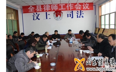 本網(wǎng)訊  2016年1月16日上午,汶上縣司法局在縣局三樓會議室組織召開全縣律師工作會議?h局黨組書記、局長林宏,縣局黨組成員、副局長郭允貞出席會議;山東圣澤律師事務所、山東中都劍律師事務所、山東興汶律師事務所、山東多贏律師事務所28名執(zhí)業(yè)律師、實習律師和輔助人員,縣局律師管理科全體人員共32人參加會議。會議由縣局黨組成員、副局長郭允貞同志主持。