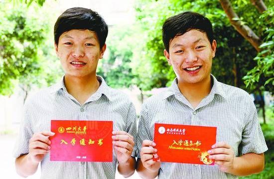 現(xiàn)年19歲的王大雙、王小雙是四川省廣安區(qū)官盛鎮(zhèn)人,兄弟倆6歲時母親離家出走,12歲時父親因煤氣中毒死亡。他們與爺爺奶奶相依為命,去年爺爺?shù)弥蹦c癌去世,奶奶患有嚴重心臟病,家境貧困。兄弟倆今年以優(yōu)異的成績分別被四川大學(xué)、西南科技大學(xué)錄取,但面對高昂的學(xué)費和生活費,兄弟倆決定放棄上大學(xué),報名參軍。