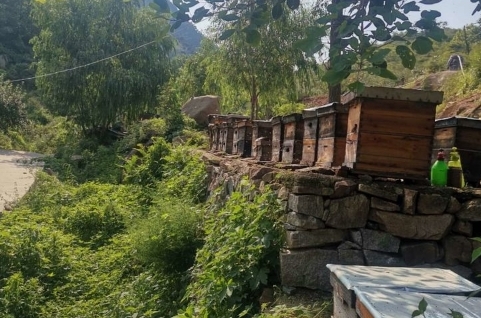 在萊蕪區(qū)茶業(yè)口鎮(zhèn)上溫峪村的大山深處,有一處世外桃源,這里山上松樹、樹槐郁郁蔥蔥,板栗掛滿枝頭,山腰蘋果散發(fā)著清香味,荊柯開著淡紫色的小花,蜜蜂飛來飛去忙碌著,潺潺流水清澈透明從田間穿過,此番景象讓人流連忘返,就是在這里家庭農(nóng)場主張文學(xué)開啟了他的甜蜜致富路。