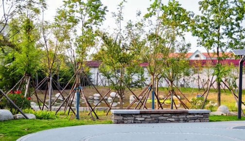 改造提升過(guò)程中,充分結(jié)合現(xiàn)有資源,開(kāi)展熟土回填、地形整理、硬化鋪裝、苗木栽植等工作。同時(shí),針對(duì)原池塘淤泥較多、長(zhǎng)年積水、軟土液性指數(shù)大等情況,采用“拋石擠淤”方式進(jìn)行軟基處理,減小地基沉降量,提高土體穩(wěn)定性,有效節(jié)約施工成本、縮短工期。按照“海綿城市”建設(shè)理念,合理利用原有水道,通過(guò)增加水生植物及景觀疊石,將原本臟亂臭的污水塘改為干凈靚麗的景觀池,達(dá)到水清、岸綠、景美的效果。
