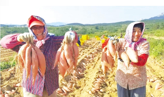 “今年的地瓜產量大,色澤好、品質好。”王波自豪地告訴記者,今年他家種了200畝地瓜,由于管理得當,平均畝產達到了9000多斤,每個3兩至8兩的精品果率達到了80%以上。來自浙江、江蘇、北京等地客商紛紛找上門來,有的直接派專車到田間地頭,地瓜剛出土便被拉走,供不應求。