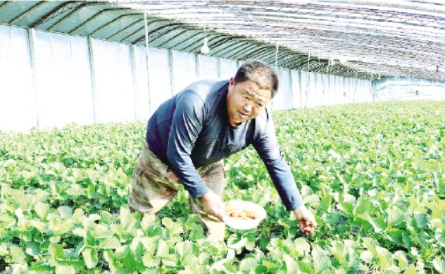 村民張硯波種了6個大棚,全部是最受歡迎的“香野”草莓。“‘香野’草莓甜度達(dá)17.5%,是目前最好的草莓品種。品質(zhì)好、種植面積大,所以我們這里的草莓不愁銷路,青島、東營、天津等地的客戶都來村里拉。”張硯波說。